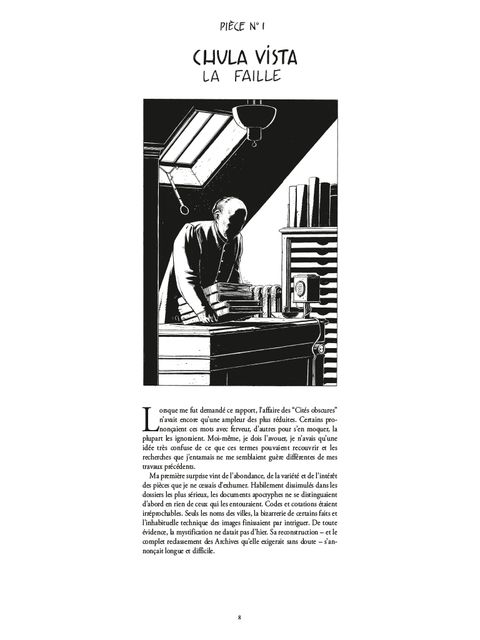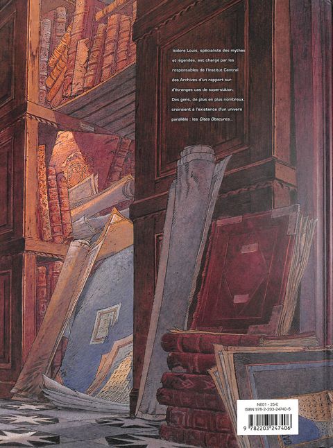 À l'Institut Central des Archives, sous-section des Mythes et Légendes, l'archiviste Isidore Louis s'attelle à une mission inédite : élaborer un rapport qui rendra compte de l'état des connaissances sur cette curieuse affaire connue sous le nom de « Cités Obscures ». S'agit-il d'une fiction, d'une superstition, d'un culte ? Comment se fait-il qu'on en trouve tant de traces dans les documents des archives ? Qui sont les nombreux sectateurs de cette étrange croyance en un univers alternatif ? Pourquoi le nom de ces villes de légende est-il si bizarrement gauchi ? Document après document, pièce après pièce, l'archiviste enquête, recoupe, documente, analyse. Mais, contre toute attente, se laisse bientôt attirer et séduire par ce singulier système de représentation du monde. Faux-semblants, jeux de miroir, mirages des apparences, vertige de la mise en abyme : sous la forme d'un bel album d'illustrations, et sans s'interdire un clin d'oeil au lecteur délibérément privé de ses repères, Schuiten et Peeters jonglent et s'amusent avec le monde qu'ils ont créé, en orfèvres inspirés. Un volume clé pour retrouver une vue d'ensemble de l'univers des Cités Obscures, dans toute sa baroque et foisonnante richesse