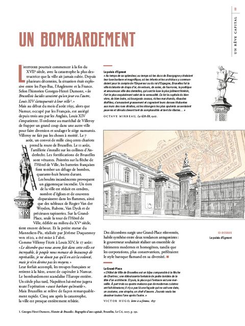 De Brüsel à Bruxelles… une visite inédite Comme en réponse à l’album Brüsel, cinquième volume des mythiques Cités obscures, Schuiten et Peeters nous donnent à voir la ville sous un angle à la fois historique, architectural et onirique… « Les âmes cachées dans les villes, comme les fleurs qui se cachent dans les prairies, sont toujours les plus jolies. Ah ! je voudrais bien voir ce qui se cache à Bruxelles… » Ces mots d’Octave Mirbeau, Benoît Peeters et François Schuiten les reprennent volontiers pour lever quelques coins du voile. Bruxelles a été bouleversée par l’histoire, à l’image d’une Belgique enfin parvenue à l’indépendance en 1830. Jamais depuis sa capitale n’a cessé d'être ouverte au monde, abritant quelques bâtiments remarquables comme l’imposant Palais de Justice, les maisons de Victor Horta ou encore les galeries royales Saint-Hubert... Dans ce beau livre en forme de promenade, Schuiten et Peeters nous invitent à (re)visiter la capitale de l’Europe, une ville aux multiples charmes qui résonne depuis toujours avec leur œuvre…