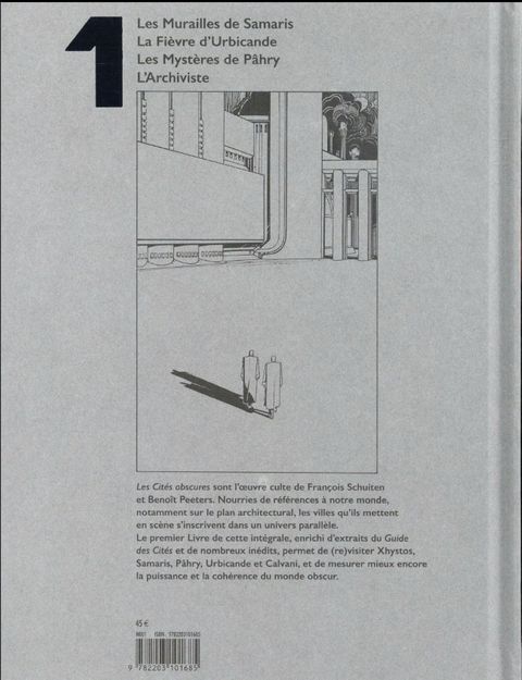 Ce volume contient, dans leurs versions révisées entre 2000 et 2008, Les Murailles de Samaris, La Fièvre d’Urbicande (y compris La Légende du réseau et La Dernière Vision d'Eugen Robick), Les Mystères de Pâhry (y compris le récit inédit Dans les faubourgs de Pâhry), L’Archiviste, et une partie du Guide des Cités, ainsi que des bonus : Urbicande Opéra, illustrations, bibliographie.