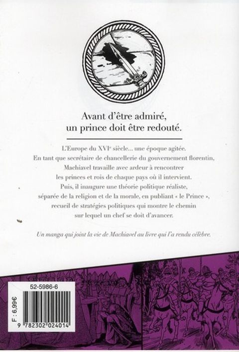 Au 16e siècle, l'Europe est en pleine confusion... Nicolas Machiavel travaille comme légat du gouvernement florentin auprès des autres pays d'Europe. il rencontre ainsi les princes, rois et reines de nombreux pays, peaufinant peu à peu, par son sens de l'observation la théorie politique qu'il développera dans « Le Prince », dont le modèle historique n'est autre que Caesar Borgia. Ce manga nous entraîne dans la vie de Machiavel en suivant son parcours, ses rencontres, ses expériences, ses réflexions... tout ce qui progressivement l'amène à écrire son livre, véritable recueil de conseils stratégiques pour s'emparer du pouvoir et le conserver.