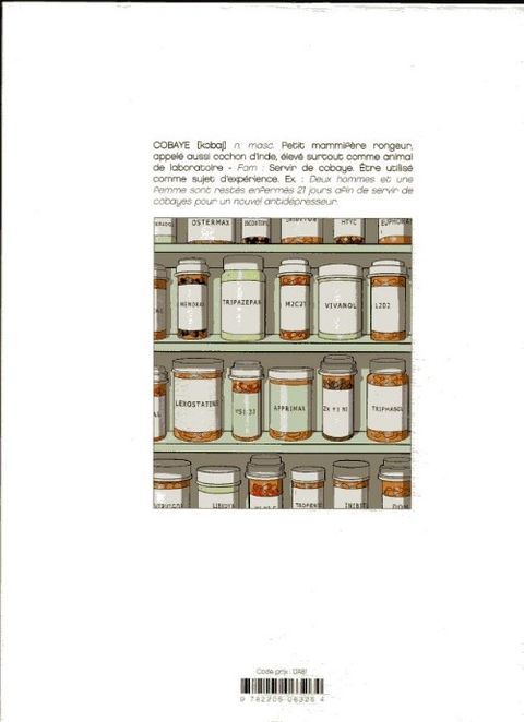 Deux hommes et une femme attendent dans une antichambre aseptisée, ils vont devenir les cobayes volontaires d'un antidépresseur révolutionnaire qui aura des répercussions inattendues sur leurs vies. Tout à la fois polar pharmaceutique, roman psychanalytique et comédie grinçante, Les Cobayes marquent, après les délicieux Dieu n'a pas réponse à tout, le retour en grande forme du tandem Nicolas Barral-Tonino Benacquista.