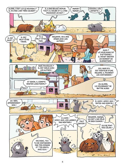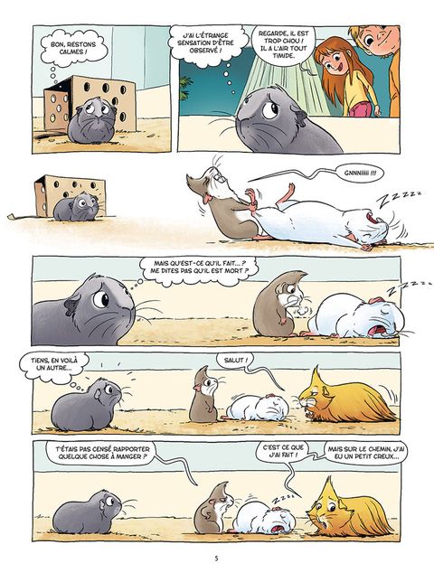 César, petit cobaye tout gris, débarque de sa campagne pour arriver dans le parc des cochons d'Inde d'Enzo et Sarah. Ses nouveaux compagnons à poils sont vraiment très étranges... L'un roupille, l'autre râle, un troisième est accroc aux fils électriques. César n'a qu'une idée en tête : s'évader ! En attendant, il faudra bien que tout ce petit monde arrive à cohabiter, malgré des caractères très différents...