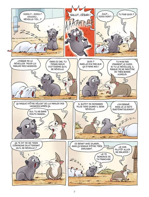 César n'arrive toujours pas à convaincre Chonchon, Indy, Takos et Dodo de s'évader de leur parc. Mais lorsqu'il évoque son envie de sortir pour prendre des vacances, l'idée séduit immédiatement les autres cochons d'Inde. Partez à la découverte de la maison d'Enzo et Sarah avec César et ses compagnons à quatre pattes dans une folle expédition qui leur réserve bien des surprises. Ce ne sera pas de tout repos !