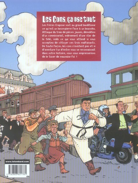 Grisbi, pétards, gars du milieu et... pièces jaunes oe!oe Ah ça, elle est belle, la jeunesse ! Arrière-petit-fils du grand Alfonso Crapone, la légende de Chicago, Tonio, Gino et Aldo tentent de perpétuer la légende familiale à Paris. Le seul problème est que ces trois caves n'entravent absolument rien au banditisme. Et, en fait de train postal, leur grand coup sera le braquage d'un fourgon de pièces jaunes, au nez et à la barbe de la première dame de France et de son judoka ! Le milieu n'a pas fini de se marrer. Toute la gouaille et le sens de la mécanique du grand Lautner et de son compère Chanoinat, réunies dans un one-shot superbement mise en images par Castaza. Faut dire qu'ces trois-là n'sont pas des naves !