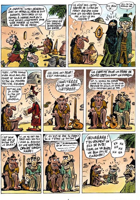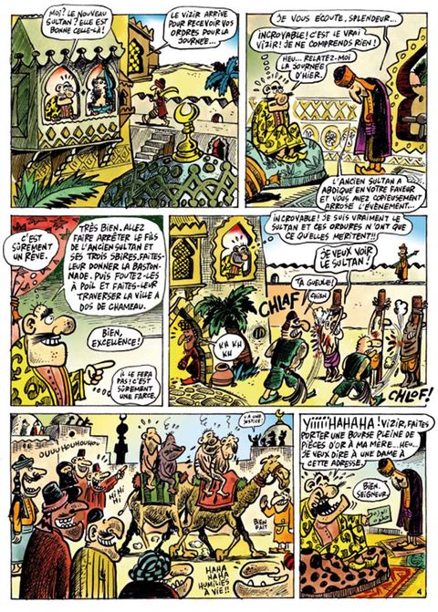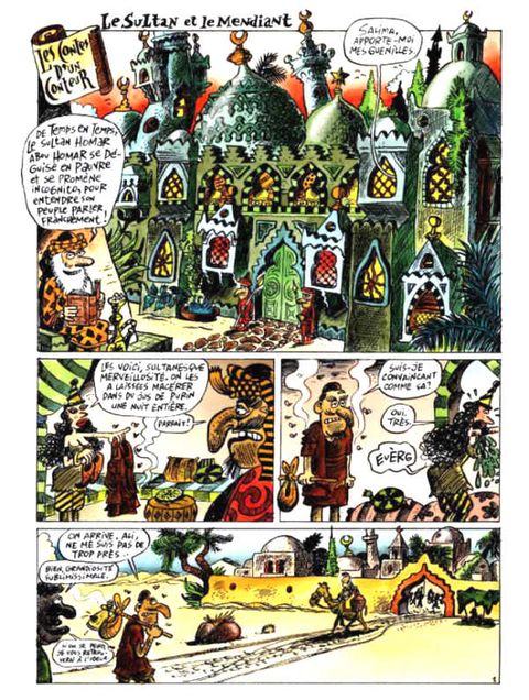 Les mille et une nuits : un océan de contes inoubliables, imbriqués les uns dans les autres. Des personnages magiques à perte de vue : djinns, éfrits et autres goules qui illuminent l'imagination des lecteurs pour plusieurs générations. Traduites pour la première fois en français il y a 300 ans, ces fameuses « nuits » peuvent faire l'objet de différents niveaux de lecture. Il faut dire que dans ces histoires, il y a avant tout des hommes aux prises avec leur « charmante » nature et leurs tendres faiblesses. Les Contes d'un conteur constituent l'interprétation à la sauce Carali (ancien de la bande à Hara-Kiri, né sous ces latitudes) du phénomène. En revisitant les morales de chaque conte, l'auteur développe tout un univers de délire et de cynisme, dans un style qui semble mélanger improvisation et défouloir.