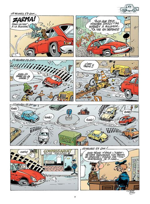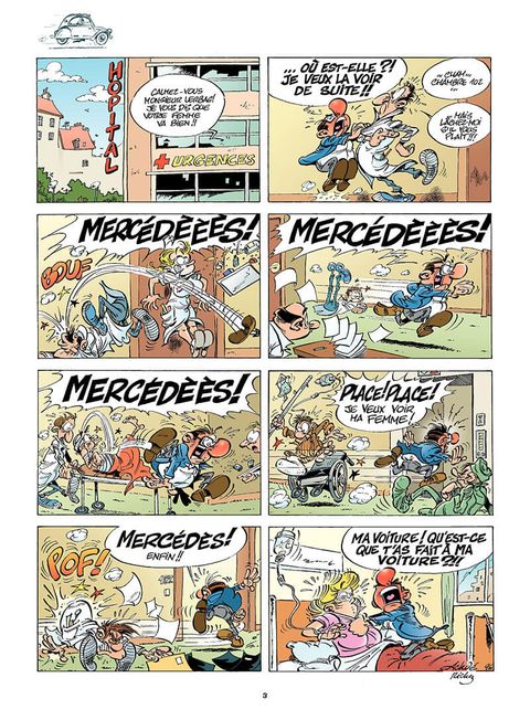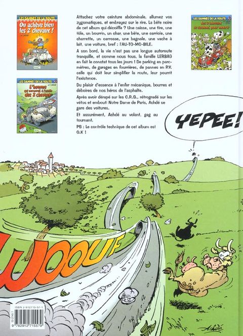 Attachez votre ceinture abdominale, allumez vos zygomatiques, et embrayez sur le rire. La bête noire de cet album qui décoiffe ? une caisse, une tire, une tôle, un bourrin, un char, une bête, une carriole, une charrette, un carrosse, une bagnole, une vache à lait, une voiture, bref : l'au-to-mo-bile. a son bord, la vie n'est pas une longue autoroute tranquille, et comme nous tous, la famille lerbag en fait le constat tous les jours ! de parking en parcmètres, de garages en fourrières, de pannes en p.v. Celle qui doit leur simplifier la route, leur pourrit l'existence. du plaisir d'essence à l'enfer mécanique, bourres et déboires de nos héros de l'asphalte. après avoir dérapé sur les c.r.s., rétrogradé sur les vétos et embouti notre dame de paris, achdé se gare des voitures. et assurément, achdé au volant, gag au tournant. ps : le contrôle technique de cet album est o.k !