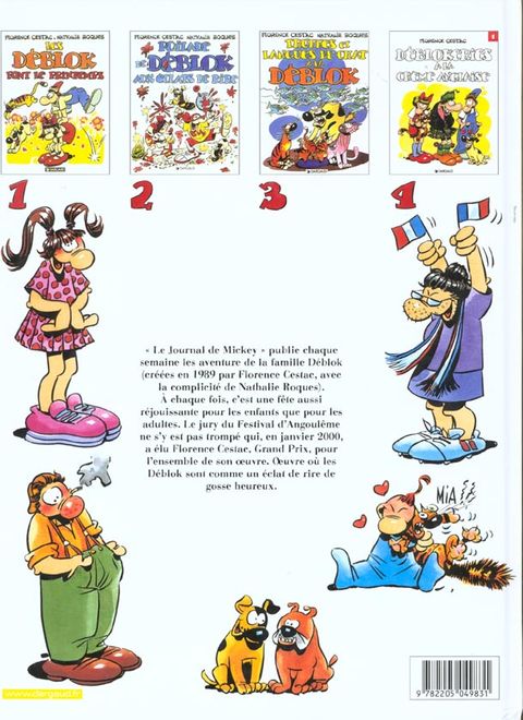 " Le Journal de Mickey " publie chaque semaine les aventure de la famille Déblok (créées en 1989 par Florence Cestac, avec la complicité de Nathalie Roques). A chaque fois, c'est une fête aussi réjouissante pour les enfants que pour les adultes. Le jury du Festival d'Angoulême ne s'y est pas trompé qui, en janvier 2000, a élu Florence Cestac, Grand Prix, pour l'ensemble de son oeuvre. Oeuvre où les Déblok sont comme un éclat de rire de gosse heureux.