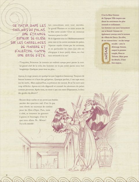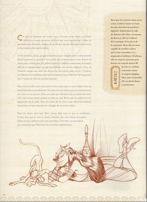 C'est la fête à Per Bast, où les célébrations de la déesse Bastet ont même attiré la royale famille du Pharaon. Mais pour les chats, c'est autre chose ! Leur grande pretresse vient de traverser le Styx, et il leur faut élire sa remplaçante. Apoua, le babouin, a entendu parler d'une chatonne blanche qui ne peut qu'être l'élue. Pour la chatte Nefertiti, c'est une nuit de périple aux mille dangers qui commence...