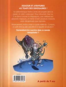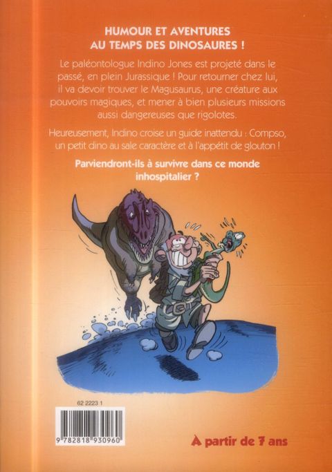 Le roman de la série. Par le plus grand des mystères, le paléontologue Indino Jones est projeté dans le passé, en plein Jurassique, au milieu des dinosaures ! Pour retourner chez lui, il va devoir trouver le Magusaurus, une étrange créature aux pouvoirs magiques, et mener à bien plusieurs missions aussi dangereuses que rigolotes. Heureusement, Indino Jones croise un guide inattendu : Compso, un tout petit dino au sale caractère et à l'appétit de glouton ! Parviendront-ils à survivre dans ce monde inhospitalier ?