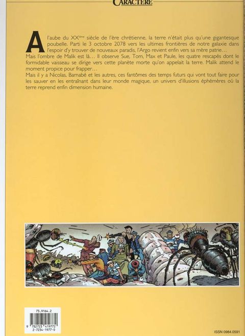 L'ombre de Malik est là... Il observe Sue, Tom Max et Paule, les quatre rescapés dont le formidable vaisseau se dirige vers cette planète morte qu'on appelait la Terre. Malik attend le moment propice pour frapper... Mais il y a Nicolas, Barnabé et les autres, ces fantômes des temps futurs qui vont tout faire pour les sauver en les entraînant dans leur monde magique, un univers d'illusions éphémères où la terre reprend enfin une dimension humaine.