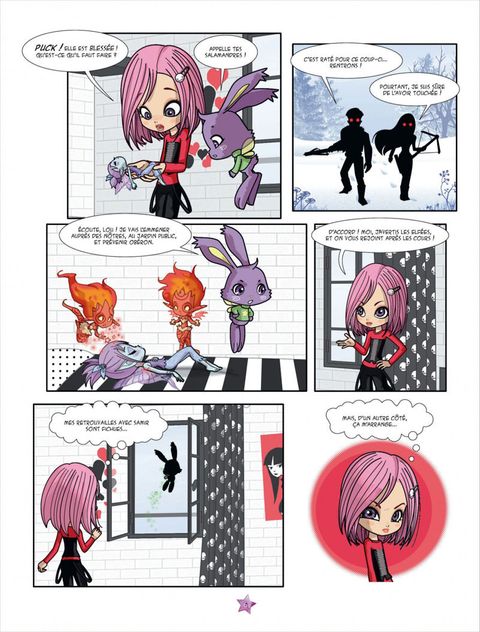 6e tome des Elfées, une BD de fantasy pour les adolescentes, réalisée Weissengel, Carrère et Dollphane, qui raconte les aventures de quatre jeunes filles bien dans leur époque et pourtant dotées d'étranges pouvoirs. Ce 6e épisode des Elfées met en scène d'inquiétants et dangereux chasseurs qui traquent sans relâche les créatures féeriques. Une fois capturées, celles-ci leur servent de cobayes pour des expériences sur l'immortalité et la magie. Mais les malfaiteurs ont le malheur de s'attaquer à la fée Fleur des pois et à une des Elfées, Lou, qui séjourne à l'orphelinat Sainte-Violette. Ses meilleures amies, Izel, Yoshi et Nina, partent sur le sentier de la guerre pour la sauver et venir en aide au peuple féerique. En cadeau à la fin de ce 6e album des Elfées, un dossier pour tout savoir sur les « strygeurs » et les « elficologues » !