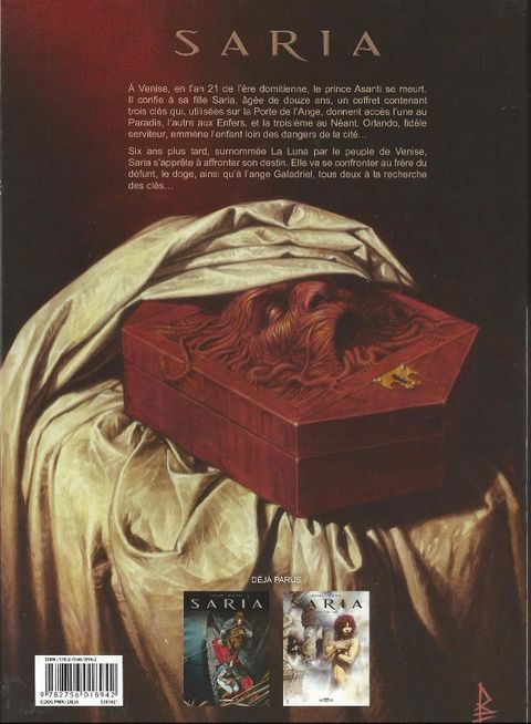 Venise. Le prince Assanti se meurt. Il confie à sa fille naturelle, Saria, un coffret contenant trois clefs qui, utilisées sur la Porte de l'Ange, donnent accès, l'une au Paradis, l'autre aux Enfers, et la troisième, au Néant. Escortée par Orlando, un fidèle serviteur, la petite fuit loin du palais et de ses dangers. Six ans plus tard, défiant le pouvoir sous le nom de la Luna, Saria se prépare à affronter son destin... Cet album est la réédition sous son nouveau nom du tome 1 de la série Les Enfers, qui avait précédemment été publié chez Robert Laffon.
