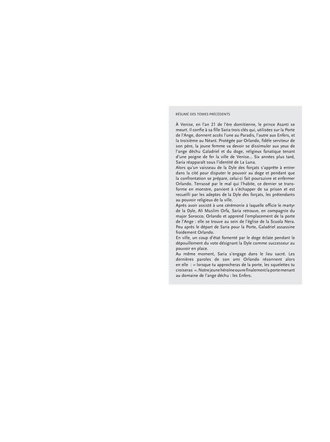 Revenue des Enfers en sauveuse de Venise, la sombre et sérénissime cité des Doges, Saria n'est plus la même. Elle incarne maintenant La Luna, une héroïne forte, prête à tout pour reprendre les rênes de sa vie et obtenir ce qui lui revient de droit. Elle a traversé de nombreux périls et fait d'énormes sacrifices pour en arriver là. L'heure est venue pour elle d'accomplir enfin sa destinée...