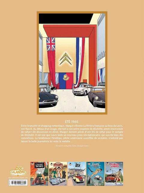 Eté 1960. Entre bronzette et shopping romantique, Margot sillonne La Riviera française au bras de Louis, son fiancé. Au détour d’un virage, elle fait la rencontre inopinée de Michelle, pilote chevronnée de rallye ! De discussion en dîner, Margot devient pilote d’une DS de rallye pour le compte de Michelin. Il est vrai que Louis teste un nouveau pneu révolutionnaire, qui suscite bien des convoitises. La ténébreuse Penelope, pilote américaine assoiffée de victoires, n’entends pas laisser la belle journaliste lui voler la vedette...