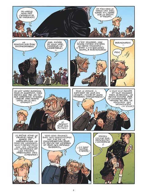 La conclusion du premier arc.Bien que son enthousiasme et sa verve ne soient pas toujours regardés d'un oeil bienveillant, Lord Harold est parvenu, à force d'astuces et de perspicacité, à se faire une petite place au sein du commissariat de Blackchurch. D'ailleurs, il semble bien déterminé à comprendre qui se cache derrière l'affreuse affaire du bétail noyé. Toutefois, les obstacles se dressent en nombre sur sa route, comme si le Royaume entier cherchait à lui mettre des bâtons dans les roues... du carrosse. Des hautes sphères de la société londonienne à la pègre de Blackchurch, en passant par l'inquiétante Mystérieuse, personne ne souhaite que le nez tout aristocratique du jeune agent fouine dans les douteuses affaires du quartier. Mais c'est mal connaître notre distingué enquêteur, bien décidé à poursuivre son investigation !Philippe Charlot et Xavier Fourquemin poursuivent et achèvent le premier cycle de leur nouvelle série dans la fascinante Londres de l'époque victorienne. Les chroniques policières d'un héros en total décalage avec son environnement, source de quiproquos, d'humour et d'aventures !