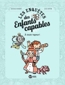 C'est après avoir résolu la mystérieuse Disparition du Turban Rose que Capucine Pinson, Sherlock Holmes en herbe et en jupons, fonde avec son frère Ben le Club des Enfants Capables ! Capables de quoi ? De tout, et surtout, de résoudre les mystères... Ce matin, Torteville est en ébullition. C'est le grand jour de la grande course aérienne. Et cette année, Ben participe à la course avec Ujesh, son ami imaginaire. Le jeune bricoleur de génie a été engagé en tant qu'aéromécano sur le vaisseau de Lord Moustache, le chef de la police. Mais lorsque Ben reçoit une lettre de menace, sa soeur Capucine décide de le suivre à la trace. C'est que Capucine adore résoudre les mystères ! Sur la pelouse d'envol du Parc Royal, elle accumule les indices accompagnée de Toto, son teckel mécanique... Au fil de l'enquête, Capucine rencontre un étrange panel d'individus suspects autant que farfelus : la Sirène de l'Air, sir Aladin Sane ou encore la sultane de Srinabar ! Le coupable se cache-t-il parmi eux ? Une série pétillante pour plonger dans un univers foisonnant et délicieusement steampunk !