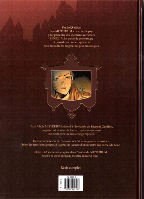 Le « MISTERIUM » est un groupe de troubadours qui parcourt la France au Moyen-âge. On prête officiellement à cette troupe de jolies représentations, mais aussi, officieusement, un talent très particulier pour résoudre les énigmes qui s'offrent à eux, dans chaque ville où ils se produisent. C'est à Baudouin, considéré comme le leader du Misterium, que reviennent tous les honneurs. Mais ce que l'on ne sait pas, c'est que la jeune Senelia possède un don exceptionnel pour résoudre les mystères les plus étranges. Notre troupe vient de s'arrêter dans le village de Brontom afin d'y donner plusieurs spectacles. Cependant, le soir de la première, un unique spectateur est présent, car deux meurtres horribles ont ensanglanté le village ! On aurait vu sortir de la demeure de la victime, une étrange silhouette ressemblant à un Baphomet, une créature à la tête et aux pieds de bouc ! Selenia commence son enquête, alors qu'un nouvel assassinat a lieu.