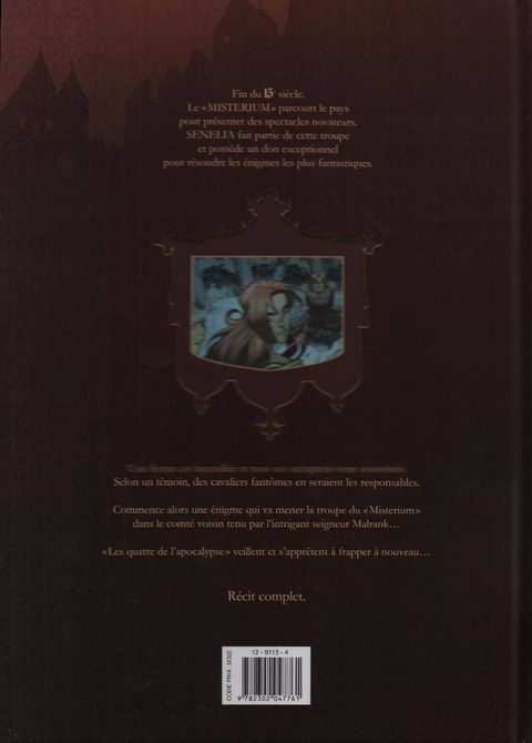 Une ferme a été brûlée et tous ses occupants ont été assassinés. Selon un témoignage, quatre cavaliers fantômes en seraient les responsables. Commence alors une énigme qui va mener la troupe du « Misterium » dans le comté voisin tenu par l'intrigant Seigneur Malrank. Pendant ce temps, « Les quatre de l'apocalypse » veillent et s'apprêtent à frapper à nouveau.