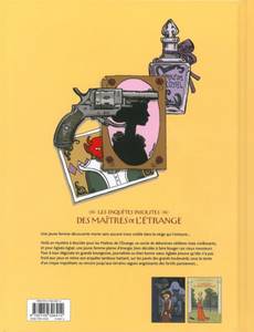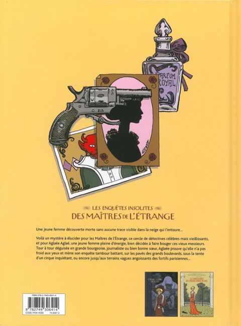 Les Maîtres de l'Étrange, ce sont quatre vieux messieurs, non dénués de talent ni de style : un ancien colonel, de Vraimont, un prêtre collectionneur d'affiches, le curé Fortier, un ancien agrégé de maths coureur de jupons, monsieur Raymond, et M. Leblanc, l'oncle d'Aglaëe. Aglaëe, c'est au bas mot leur plus grande admiratrice. Par ailleurs fort jolie jeune fille, elle rêve d'échapper au destin tout tracé par sa mère : épouser un garçon boucher... Voilà pourquoi lorsque ces chenus détectives tentent d'élucider la mort mystérieuse d'une femme trouvée dans la neige sans aucune trace de pas autour d'elle, Aglaëe se lance à coeur perdu dans l'enquête.Voici le premier tome d'une enquête en deux volets dans la France "Belle Époque", où le spiritisme était à la mode et le monde pas encore connecté en WiFi !Époque parfaite pour une histoire mêlée de mystère, d'humour et d'investigation policière.