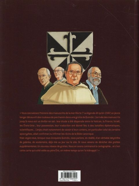 À Paris, le chercheur Christopher Wertmann reçoit un appel de Dino Lorenzo, responsable des services secrets du Vatican. Il a un travail pour lui. Envoyé en mission à l'École biblique de Jérusalem, le plus ancien centre de recherche archéologique en Terre sainte, Chris doit enquêter sur la récente disparition d'un prêtre dominicain dans les rues de Jérusalem. Or ce dernier était en possession de dossiers ultraconfidentiels, en particulier une carte de fouilles archéologiques qui intéresse de très près l'École. Si, comme les chercheurs le supposent, ce qu'elle mentionne est exact, l'humanité serait au bord de l'une des plus grandes découvertes de son histoire ! Arnaud Delalande, Yvon Bertorello et Alessio Lapo signent un passionnant thriller ésotérique à la découverte des secrets de la Bible ! Un album très documenté et précis d'un point de vue archéologique et religieux, en partenariat avec la prestigieuse École biblique et archéologique française de Jérusalem.
