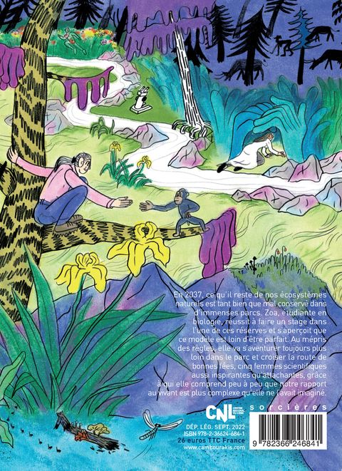 En 2037, ce qu'il reste de nos écosystèmes naturels est tant bien que mal conservé dans d'immenses parcs. Zoa, étudiante en biologie, réussit à faire un stage dans l'une de ces réserves et s'aperçoit que ce modèle est loin d'être parfait. Au mépris des règles, elle va s'aventurer toujours plus loin dans le parc et croiser la route de bonnes fées, cinq femmes scientifiques aussi inspirantes qu'attachantes, grâce à qui elle comprend peu à peu que notre rapport au vivant est plus complexe qu'elle ne l'avait imaginé.
