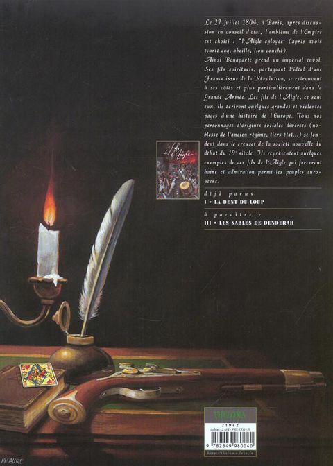 Le 27 juillet 1804, à Paris, après discussion en conseil d'état, l'emblème de l'Empire est choisi : "l'Aigle éployée" (après avoir écarté coq, abeille, lion couché). Ainsi Bonaparte prend un impérial envol. Ses fils spirituels, partageant l'idéal d'une France issue de la Révolution, se retrouvent à ses côtés et plus particulièrement dans la Grande Armée. Les fils de l'Aigle, ce sont eux, ils écriront quelques grandes et violentes pages d'une histoire de l'Europe. Tous nos personnages d'origines sociales diverses (noblesse de l'ancien régime, tiers état...) se fondent dans le creuset de la société nouvelle du début du 19e siècle. Ils représentent quelques exemples de ces fils de l'Aigle qui forceront haine et admiration parmi les peuples européens.