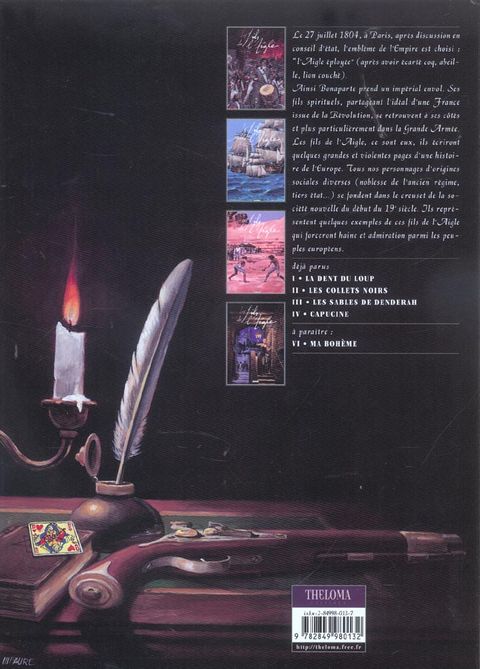 Octobre 1804 à Paris, Le Lieutenant Morvan D'Andigny reçoit une lettre de son ami La Giberne lui demandant de venir au plus vite dans le camp de Boulogne. Son ami serait compromis dans un complot. Morvan décide sur le champ de partir sur le champ en direction de Boulogne. A partir du mois de mai et tous les deux mois, Les fils de l'Aigle reviennent pour le plus grand plaisir de tous. Le lecteur pourra découvrir Morvan d'Andigny et la ravissante Capucine dans une saga sur les traces de Napoléon.
