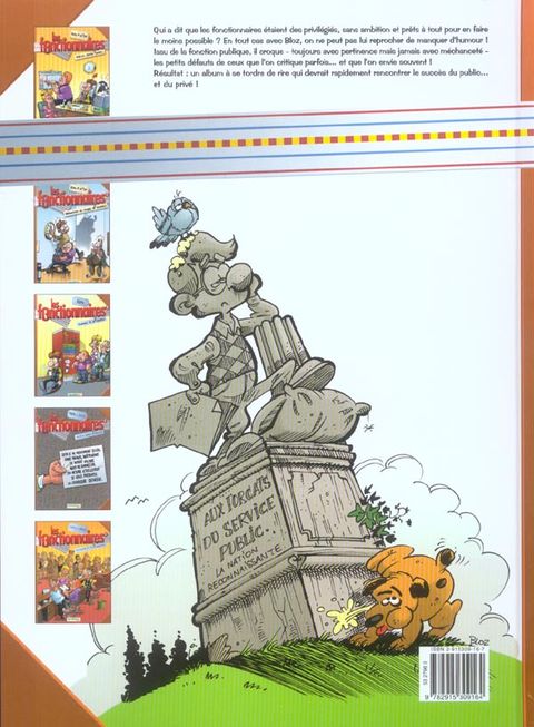 Qui a dit que les fonctionnaires étaient des privilégiés, sans ambition et prêts à tout pour en faire le moins possible ? en tout cas avec bloz, on ne peut pas lui reprocher de manquer d'humour ! issu de la fonction publique, il croque - toujours avec pertinence mais jamais avec méchanceté - les petits défauts de ceux que l'on critique parfois... Et que l'on envie souvent ! résultat : un album à se tordre de rire qui devrait rapidement rencontrer le succès du public... et du privé !