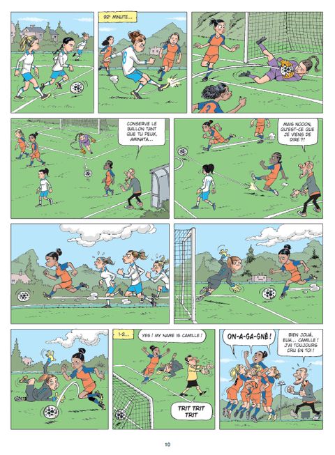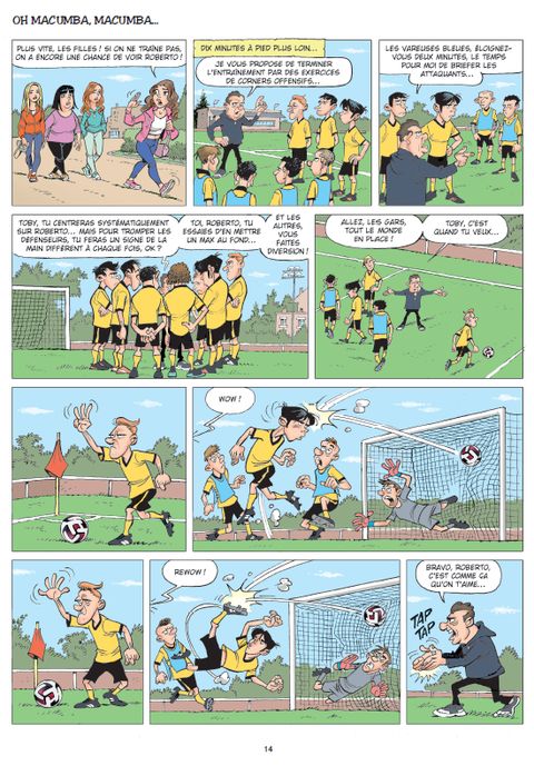 Erreur de vestiaire ! Chez les Fontaine, tout tourne autour du foot en général et de leur club de cœur en particulier : Ville-Basse. Au grand désarroi de Lily, la fille de la famille, qui du haut de ses seize ans a d’autres centres d’intérêt, moins sportifs et plus girly. Mais le regard que la jeune ado porte sur le ballon rond pourrait bien changer avec l’arrivée chez elle de Baptiste, un jeune stagiaire particulièrement à son goût que son papa a accepté d’accueillir pour l’année. Vu les piètres qualités footballistiques de son fils Jules, ce pourrait bien être pour le père de famille la seule chance d’héberger sous son toit un futur joueur de l’équipe première. Tout le monde vivrait donc heureux chez les Fontaine, si au dernier moment, suite à un imbroglio contractuel, ils ne se rendaient compte que le jeune stagiaire avait en fait signé dans le club voisin et ennemi : Ville-Haute ! Les Foot Furieux 2.0 ! Depuis plus de vingt ans, chaque nouveauté des Foot Furieux est attendue par une foule de plus en plus nombreuse de supporters acharnés. Partant du principe que leur attachement à la série se nourrit de surprises, les auteurs et leur éditeur ont décidé cette fois de changer radicalement la formule qui a fait leur succès. Hors-jeu les gags en une page et les personnages à chaque fois renouvelés, Les Foot Furieux se déclineront désormais en histoires longues, animées par des personnages récurrents. Bienvenue donc à Baptiste, jeune prodige du ballon rond évoluant à Ville-Haute, à la famille Fontaine, aficionados officiels du club rival de Ville-Basse, et à une galerie de personnages tous plus hauts en couleur les uns que les autres, gravitant autour de ces deux clubs ennemis. Let Derby Rock! Les prochains derbys risquent d’être animés !