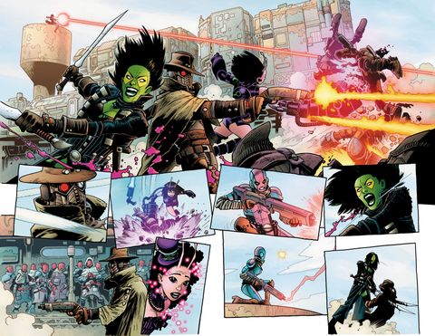Un an plus tôt, les Gardiens de la Galaxie ont été détruits suite à la trahison de l'un des leurs. Ce qui reste de l'équipe se retrouve au beau milieu d'une guerre civile dans laquelle deux anciens associés sont aussi impliqués : Rocket et Groot qui n'avaient pas du tout envie de les voir ! Jackson Lanzing et Collin Kelly se sont illustrés sur la récente série Captain America: Sentinel of Liberty. Les voici qui reprennent en main le destin des Gardiens (toujours aussi populaires après le troisième film qui leur a été consacré) sur des dessins du dynamique Kev Walker (Avengers Arena).