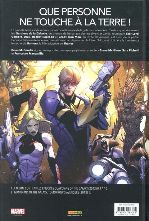 Alors qu'ils ne sont pas censés s'approcher de la Terre, les Gardiens de la Galaxie vont braver cette interdiction et accueillir un nouveau membre : l'Avenger Iron Man. Ensemble, ces héros doivent protéger Londres qui est le théâtre d'une invasion d'aliens Badoon, rencontrer la mystérieuse Angela puis affronter les armées de Thanos. Réédition en MARVEL DELUXE de la série MARVEL NOW ! de Brian Michael Bendis (Secret Invasion, Age of Ultron). Contient les traductions françaises des épisodes US suivants : Guardians of the Galaxy (2013) 0.1, 1 à 10 Guardians of the Galaxy : Tomorrow's Avengers 1