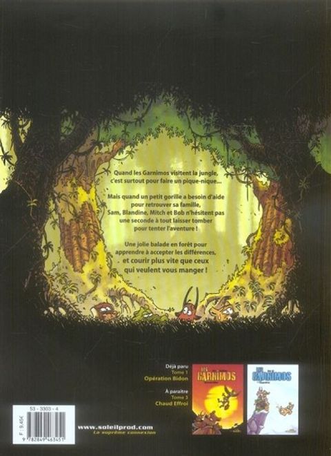 Après avoir démasqué le mystérieux voleur d'eau au milieu de la savane, c'est au coeur de la jungle profonde que Sam le lion et Blandine l'antilope vont vivre une nouvelle aventure. Accompagnés par leurs amis Mitch le buffle et Bob le crocodile, nos petits héros vont en effet rencontrer Victor, un petit gorille blanc;qui a bien des soucis. Les Garnimos vont alors vivre une belle histoire d'amour, d'amitié, de tolérance... Et c'est vraiment pas facile quand on est poursuivis par des léopards !