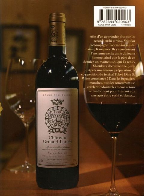Afin d'en apprendre plus sur les accords sushi et vins, Shizuku accompagne Tooru dans sa ville natale, Kanazawa. Ils y rencontrent l'ancienne petite amie du jeune homme, ainsi que le père de ce dernier, maître-sushi qui l'a renié, et Shizuku découvre une piste. Après une intense préparation, la compétition du festival Tokyo Dine & Wine commence ! Dans les premières manches, tous les concurrents se révèlent redoutables même si tous se cantonnent pour l'instant aux mariages entre sushi et blancs...