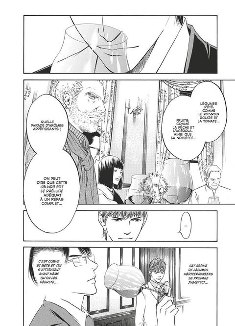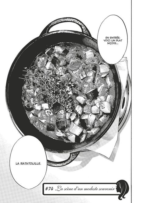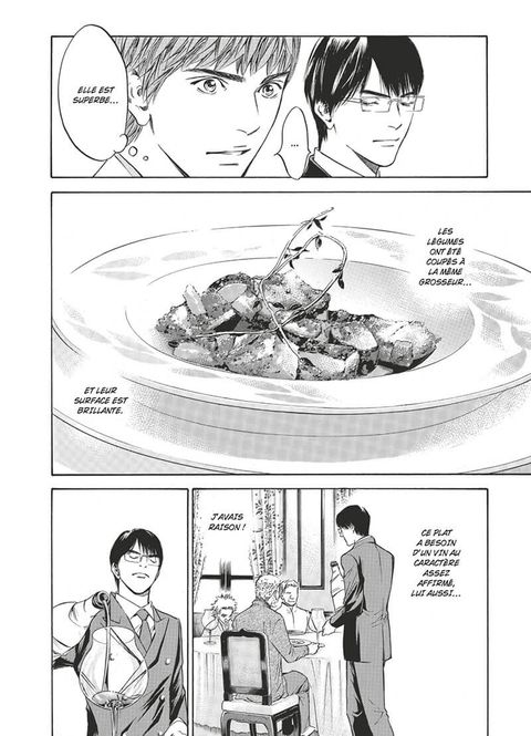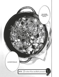C'est le début du duel qui met en jeu quatre des sept feuillets de l'article sur les Gouttes de Dieu. Shizuku et Issei dévoilent en rivalisant de créativité les mariages qu'ils ont élaborés pour la ratatouille, le saumon meunière sauce au vin blanc, puis le rôti d'agneau de prés-salés. Arrive alors le moment du dernier mariage, celui avec le gâteau au chocolat...