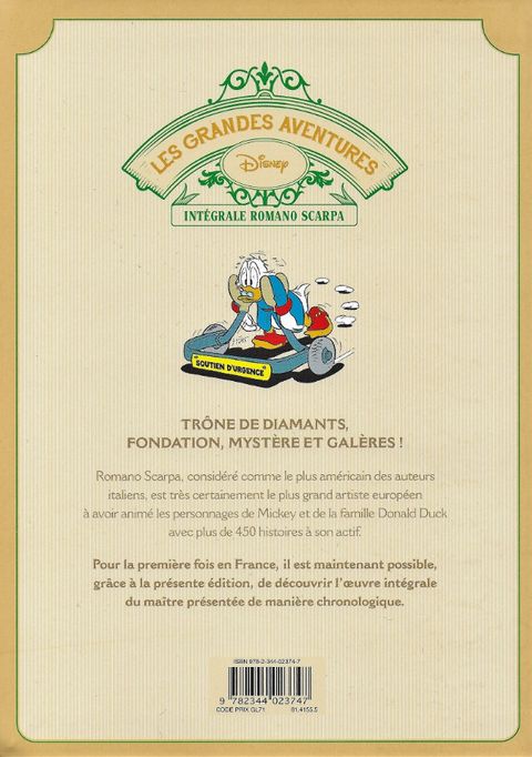 Toute l’œuvre du maître italien de Disney, enfin en intégrale ! Après Carl Barks, Floyd Gottfredson et Don Rosa, les éditions Glénat sont heureuses de vous présenter leur nouvelle intégrale dédiée à l’un des grands dessinateurs de l’univers Disney : le maître italien Romano Scarpa ! Construite de façon chronologique, bénéficiant, à l’instar des autres séries de la « Pléiade Disney » d’un appareil critique très complet, cette nouvelle collection devrait combler les attentes des fans qui l’espéraient comme le messie ! Inaugurée en octobre dernier, cette nouvelle collection patrimoniale va connaître un rythme de parution de 3 volumes par an. Ce troisième tome reprend toutes les histoires créés par Romano Scarpa entre 1957 et 1959.