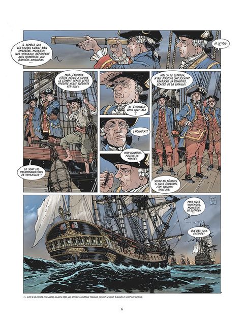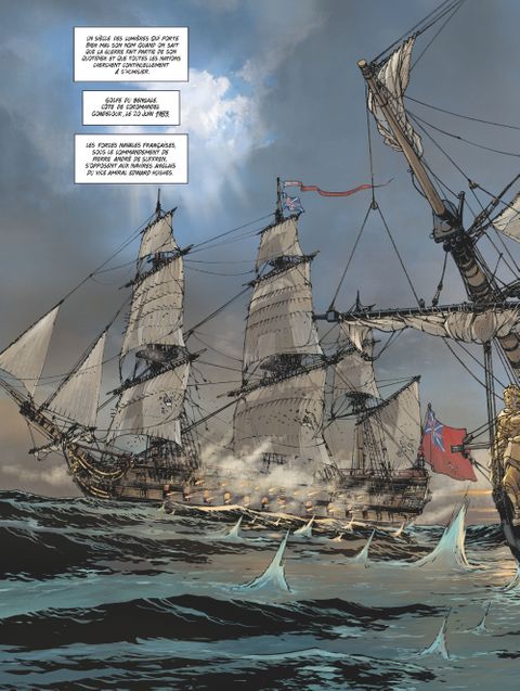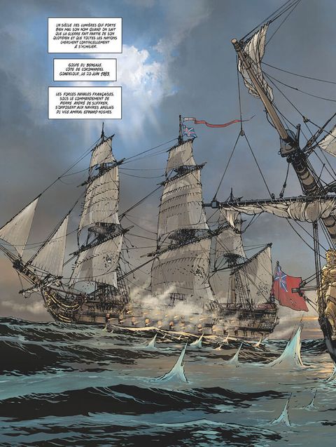 Pierre André de Suffren est de ces marins qui connaissent tardivement les honneurs et la reconnaissance. Pourtant, l’homme peut se targuer très jeune de tout connaître de la mer et de l’art de la guerre. Mais corpulent, mal soigné, à l’humeur capricieuse et au déplaisant franc-parler, Pierre André de Suffren ne sait pas se faire apprécier en des temps où il faut se montrer courtois et déraisonnablement flatteur. C’est la guerre d’indépendance aux États-Unis qui permet à l’impétueux officier de marine d’enfin démontrer ses talents. Alors que les affrontements aux Amériques perdurent depuis 1775, Louis XVI décide de porter le désordre dans les affaires anglaises aux Indes orientales. Une guerre ne peut se mener sans argent et le commerce avec les Indes remplit les caisses anglaises. Larguant les amarres en mars 1781 pour les eaux de l’océan Indien, Suffren écrit qu’il saisira toute opportunité pour enfin fouler les chemins de la gloire.