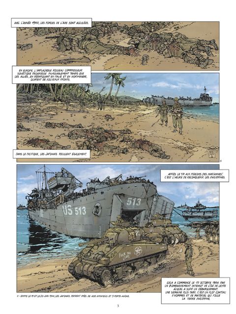Commençons par les bons côtés : le dessin est globalement bon surtout en ce qui concerne les avions et bateaux. Maintenant, parlons narration. Car ici, cela se corse. La bataille de Leyte est la plus grande bataille navale de tous les temps qui vit s'affronter des cuirassés, des dizaines de porte-avions, (...) Voir le commentaire