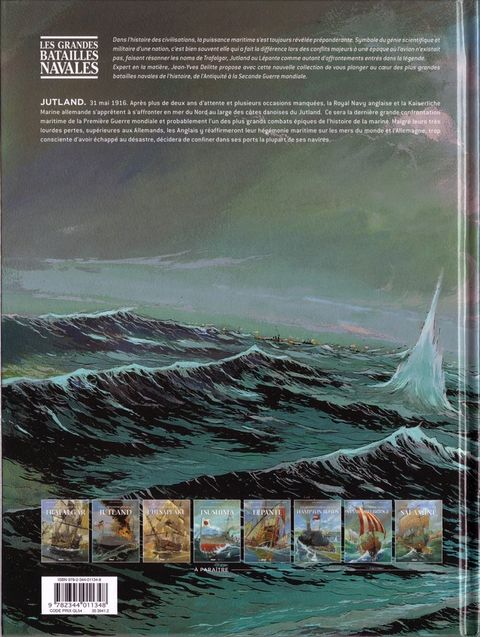31 mai 1916. Après plus de deux ans d'attente et plusieurs occasions manquées, la Royal Navy anglaise, dont la Grand Fleet est commandée par le vice-amiral John Jellicoe et l'escadre des croiseurs de bataille par le vice-amiral David Beatty, contraint les Allemands à une grande confrontation navale en mer du Nord au large des côtes danoises du Jutland. L'amirauté britannique a fait le choix de privilégier dans les engagements la vitesse de déplacement et le tir rapide. Pour y répondre, le blindage des croiseurs de bataille, fer de lance de toute flotte, a été allégé. Le choix va s'avérer dramatique pour les navires de la Royal Navy dont les soutes débordent de cordite, un nouvel explosif d'une puissance alors jamais égalée. Trois croiseurs de bataille, dont Le HMS Invincible et son amiral Horace Hood, vont le payer chèrement. Il suffira d'une bordée d'obus allemands pour embraser les vaisseaux de guerre anglais et bouter le feu à la cordite avec les conséquences que l'on imagine aisément. Alors que la bataille entre les deux flottes ne fait rage que depuis peu, la Royal Navy perd trois de ses fleurons et plus de 3.000 hommes. Si victoire il y a, elle eut un goût amère, assurément... Jutland a été la dernière grande confrontation maritime de la Première Guerre Mondiale. Malgré leurs très lourdes pertes, supérieures aux allemands, les Anglais y réaffirmaient leur hégémonie maritime sur les mers du monde et l'Allemagne, trop consciente d'avoir échappée au désastre, décidait de confiner dans ses ports la plupart de ses navires