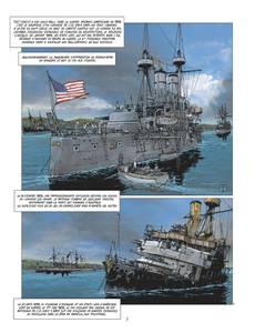 La plus grande bataille navale de la guerre hispano-américaine.En janvier 1898, témoins des troubles civils qui secouent depuis plusieurs années la grande île de Cuba, encore territoire espagnol, les États-Unis décident d’envoyer l’un de leurs navires de guerre. La sixième puissance maritime mondiale tient par cette manœuvre à rappeler aux belligérants qu’elle surveille avec attention les événements. Il faut dire que les États-Unis ont quelques intérêts économiques dans l’île. Malheureusement ce qui devait n'être qu’une manœuvre d’intimidation se transforme en tragédie. Alors que la nuit tombe sur les eaux calmes du port de La Havane, le 15 février 1898, une impressionnante explosion déchire les flancs de l’ USS Maine. Il est 21h40 et le cuirassé américain sombre en quelques minutes. Accident, attentat, qu’importe, le président américain, William Mc Kinley, qui voulait éviter le conflit, ne peut pas longtemps tergiverser. Attisée par une presse virulente qui crie vengeance, la guerre entre les deux nations éclate le 25 avril 1898. Les choses vont alors s’emballer. Si sur le papier les forces espagnoles apparaissent bien supérieures, en quelques semaines, l’île est isolée, un blocus naval est établi autour de Santiago de Cuba et les forces américaines progressent rapidement dans les terres. Pour l’amiral Pascual Cervera y Topete la seule issue pour s’échapper de la nasse, c’est de forcer le blocus naval. Mais sa flottille est bien faible au regard de l’imposante armada de l’US Navy. Le 3 juillet 1898, l’heure de la confrontation tant attendue par les uns et tant redoutée par les autres se produit !Les historiens ont dénombré plus d’un demi-millier de batailles navales qui ont joué un rôle dans l’histoire du monde. Jean-Yves Delitte, peintre officiel de la Marine et expert en histoire maritime, en a sélectionné une vingtaine parmi les plus significatives. Ce choix permet d’offrir un regard large sur plus de 2 500 ans d’histoire. Alors, embarquez pour un voyage dans le temps !