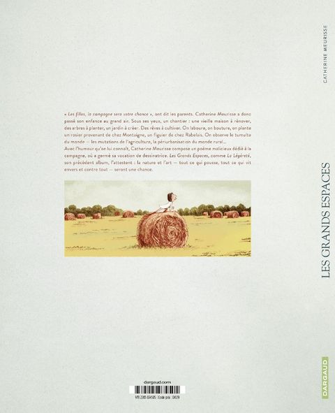Catherine Meurisse a grandi à la campagne, entourée de pierres, d'arbres, et avec un chantier sous les yeux : celui de la ferme que ses parents rénovent, afin d'y habiter en famille. Une grande et vieille maison qui se transforme, des arbres à planter, un jardin à imaginer, la nature à observer : ainsi naît le goût de la création et germent les prémices d'un futur métier : dessinatrice. Avec humour et tendresse, l'auteure raconte le paradis de l'enfance, que la nature, l'art et la littérature, ses alliés de toujours, peuvent aider à conserver autant qu'à dépasser. Les Grands Espaces raconte le lieu d'une enfance et l'imaginaire qui s'y déploie, en toute liberté.