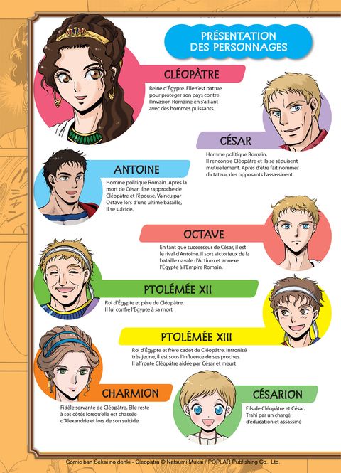 Dotée d'une beauté et d'une intelligence légendaires, Cléopâtre est la dernière reine de la dynastie de Ptolémées. Née en 69 avant J-C, Cléopâtre s'est battue tout au long de sa vie pour conserver le trône et l'indépendance de l'Egypte en prenant toujours soin de s'allier avec les Romains les plus influents de l'époque. Sa rencontre décisive avec Jules César donnera naissance à son premier fils Césarion, puis après l'assassinat du général, elle vivra une idylle de près de dix ans avec Antoine, mettant au monde trois autres enfants. Vaincu lors de la bataille navale d'Actium par Octave, puissant rival d'Antoine, le couple mythique connaîtra une fin tragique qui fera finalement tomber l'Egypte aux mains des Romains...