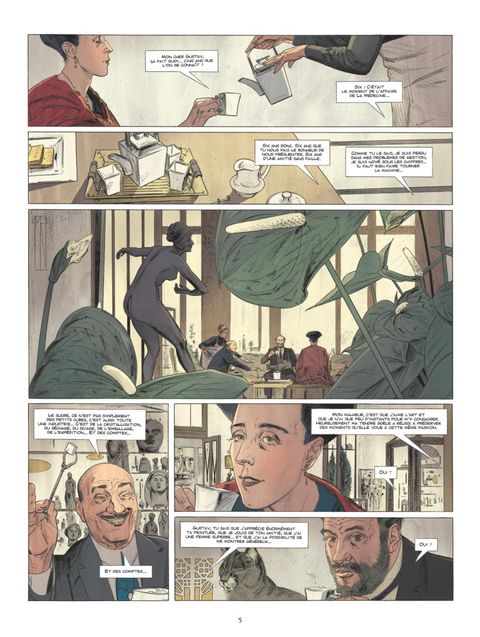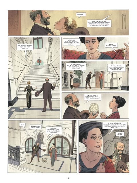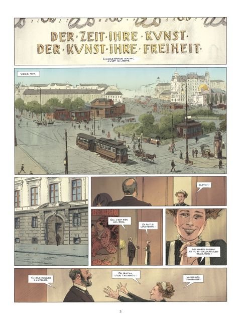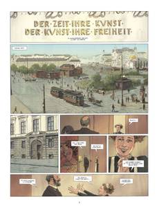 Le peintre aux doigts d'or. Vienne, 1907. Gustav Klimt se rend dans la demeure des Bloch-Bauer. Ce couple de la haute-bourgeoisie viennoise et le peintre semblent partager une profonde amitié. Il faut dire que six ans plus tôt, alors que le scandale de son tableau La Médecine lui mettait à dos les trois-quarts des professeurs de l'université de Vienne, Adèle et Ferdinand Bloch-Bauer étaient parmi les seuls à reconnaître son génie. Visitant son atelier, partageant son quotidien, ils étaient peu à peu devenus amis. Aujourd'hui, Ferdinand lui demande l'honneur de réaliser un portrait de sa femme. Flatté et reconnaissant, Klimt promet de la recouvrir d'or... littéralement. Jean-Luc Cornette et Marc-Renier nous plongent dans l'univers charnel et symboliste du maître de l'Art Nouveau viennois. Fantasmant par instants les songes hallucinés du peintre desquels il aurait puisé son inspiration, cet album nous offre un voyage aux sources de la beauté, entre rêve et réalité.
