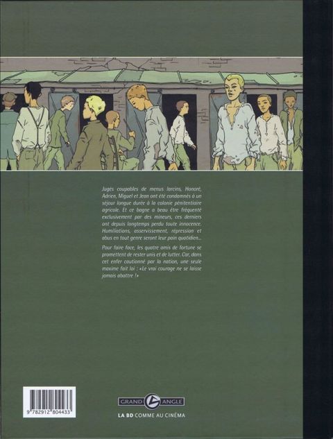 Quand la BD s'intéresse à un pan complément occulté de l'Histoire : les bagnes d'enfants. Janvier 1912. Quatre jeunes parisiens sont conduits dans une lointaine campagne. Condamnés à diverses peines, ils rejoignent la colonie pénitentiaire agricole « Les Marronniers ». Les poulbots vont découvrir et apprendre de nouvelles règles dans ce lieu que l'on appellera plus tard « les bagnes d'enfants ». L'injustice et la violence, mais aussi l'amitié et la solidarité, constituent le quotidien des colons. Jean a ses secrets ; Adrien, ses doutes ; Miguel, ses blessures ; Honoré, un caractère bien trempé... Et nos héros refusent d'être écrasés par le système pénitentiaire. D'autant plus qu'à l'échelle de ce microcosme social, ils ont chacun leurs projets...