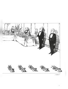 Les épicuriens vous le diront : rien n'est meilleur qu'un bon plat pris en compagnie de sa mélodie préférée ; qu'un bon morceau de musique se savoure comme une bonne pièce de viande ; bref, que le plaisir de manger et celui d'écouter semblent aussi proches que bouche et oreilles sur un visage !Évidemment, deux thèmes aussi incontournables n'ont pu passer à côté de la plume acérée de Serre. En véritable gastronome du rire, en musicologue de l'absurde, l'auteur nous propose un florilège d'illustrations hilarantes scrutant avec une précision diabolique la façon dont les hommes se nourrissent le ventre, et l'âme. Il prouve une fois de plus, s'il en était besoin, à quel point son talent et son humour sont intemporels. Que vous soyez mélomane averti ou estomac sur pattes, ne vous attendez pas à être épargné !