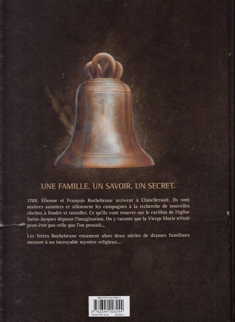 1788. Étienne et François Rochebrune sont deux frères jumeaux aux caractères diamétralement opposés : Étienne, l'intellectuel, passe sa vie dans les livres, tandis que François, plus impulsif, est une vraie force de la nature. Ils descendent d'une longue lignée de maîtres saintiers dont le métier consiste à dessiner, sculpter et fondre les cloches. En recherche d'un chantier où exercer leurs talents, ils arrivent à la ville de Châtellerault. Ici, les gens se plaignent de la cacophonie produite par les cloches en piteux état de l'église Saint-Jacques. Comme il est de coutume de croire que les jumeaux portent malheur, les fidèles voient les frères Rochebrune d'un mauvais oeil. Pourtant le maire de la ville décide de leur confier le chantier. Après une brève inspection, les jumeaux constatent l'étendue des dégâts et découvrent, gravées sur les cloches, de mystérieuses inscriptions en latin datant du XIVe siècle qui dévoileraient l'emplacement du tombeau de la Vierge Marie !