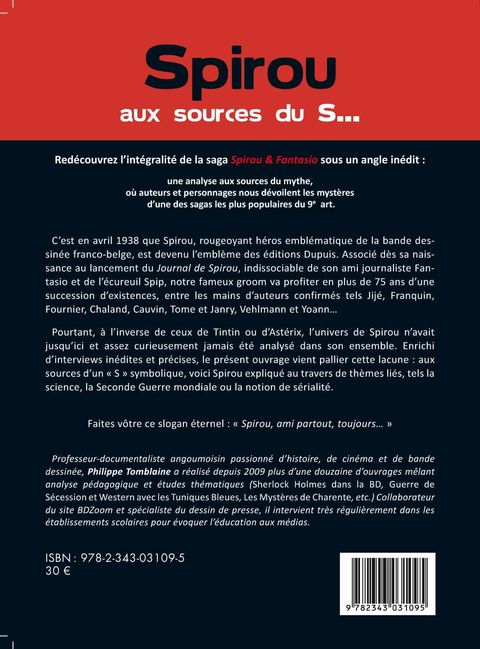 Spirou aux Sources du S... ; une Analyse de la Mythologie et des Références Internes de la Série Spirou et Fantasio.C'Est en Avril 1938 que Spirou Devient l'Emblème des Editions Dupuis. Pendant 75 Ans, le Fameux Groom Va Profiter d'une Succession d'Existences, entre les Mains d'Auteurs Confirmés Tels Jijé, Franquin, Fournier, ... Pourtant à l'Inverse de Ceux de Tintin ou d'Astérix, l'Univers de Spirou n'avait jusqu'Ici Jamais Eté Analysé dans son Ensemble. Voici le Héros Emblématique de la Bande Dessinée Franco-Belge Expliqué au Travers de Thèmes Liés Tels que la Science, la Seconde Guerre Mondiale ou la Notion de Sérialité.Table des Matièresspirou, une Spirale Chronologique1. Sorcellerie Champignacienne : il Etait une Fois...2. la Seconde Guerre Mondiale : un Héros Contre les Totalitarismes3. Sciences, Savoirs et Science-Fiction : un Monde D'Ultra-Modernité ?4. Serial, Série, Séquences : l'Aventure Cinématographique5. Spatialisation du Mythe : entre Tintin et Astérix6. Silhouettes et Ombres : le Caractère de « l'Ecureuil Wallon »7. Saga-Citée : Vehlmann et Yoann, la Reprise d'un Mythe8. Spécialités Locales : Entretiens avec les Auteurs9. Séquences Pédagogiques