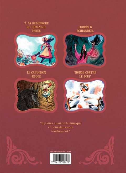 Une petite fille s'échinant jour après jour descend au fond du puit à la recherche du dimanche retenu captif par une méchante sorcière. Une autre vilaine magicienne change en oiseaux toutes les jeunes femmes s'approchant trop près de sa sombre tour. Enfin, une dernière enfant part voir sa grand-mère au milieu de la forêt, sauf qu'en chemin, elle rencontre un loup machiavélique. Trois célèbres contes de Grimm adaptés par des auteurs de l'Europe entière : - À la recherche du dimanche perdu (Ileana Surducan) - Lorinn & Lorinndell (Maurizia Rubino) - Le capuchon rouge (Victor Rivas) Trois célèbres contes de Grimm adaptés par des auteurs de l'Europe entière. + en bonus uniquement dans ce coffret : Rouge contre le loup (Alexander Utkin) Seulement 500 exemplaires numérotés.