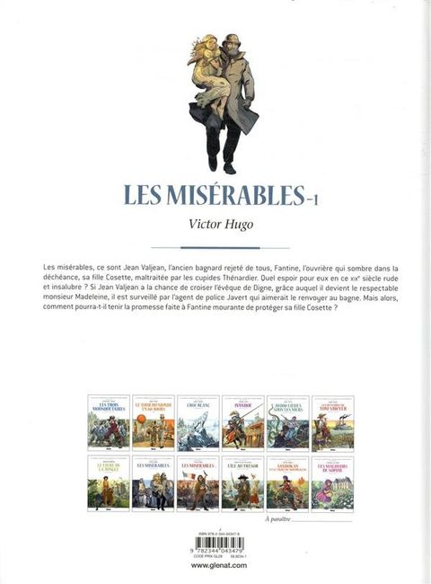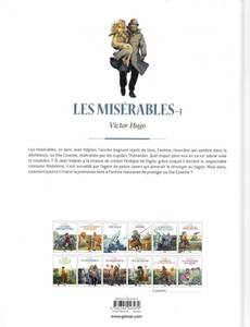 L'un des romans les plus importants de la littérature française en BD. Les misérables, ce sont Jean Valjean, l'ancien bagnard rejeté de tous, Fantine, l'ouvrière qui sombre dans la déchéance, sa fille Cosette, maltraitée par les cupides Thénardier. Quel espoir pour eux en ce XIXe siècle rude et insalubre ? Si Jean Valjean a la chance de croiser l'évêque de Digne, grâce à qui il devient le respectable monsieur Madeleine, il est surveillé par l'agent de police Javert qui le renvoie au bagne. Mais alors, comment pourra-t-il tenir sa promesse faite à Fantine ? Celle où, au moment de ses derniers instants de vie, elle lui fit promettre de protéger Causette, sa fille.