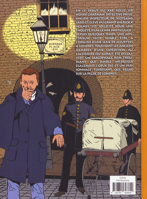 Une série de meurtres mystérieux touche Londres en ce début du XXe siècle. En ce début du XXe siècle, Sir Henry Chapman, détective privé, ancien inspecteur de Scotland Yard et élève du grand Sherlock Holmes, est sollicité pour une enquête d'un genre particulier : Depuis quelque temps, une mystérieuse secte semble être à l'origine d'une série de meurtres à Londres, touchant les anciens membres d'une expédition au Cachemire où aurait été découvert un sarcophage bien troublant qui semble intéresser également l'Opus Dei et un personnage terrifiant qui règne sur la pègre de Londres...
