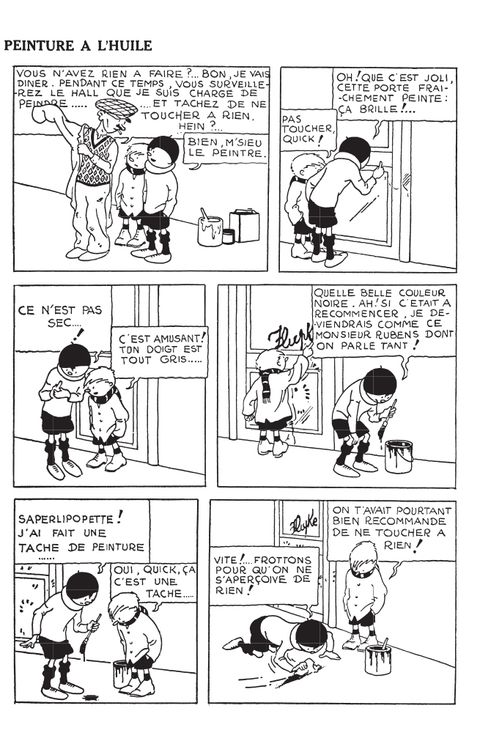 Créés par Hergé dans le journal Le petit Vingtième en 1930, ces deux héros hauts en couleurs, inventent à longueur de journée toutes sortes d'engins aussi farfelus qu'inutiles. Enfants des rues de Bruxelles, ils forment un véritable duo comique, surtout lorsqu'il s'agit d'éviter les pièges des adultes et de prendre à défaut le débonnaire et paternaliste Agent 15 ! Incorrigibles garnements, ces deux farceurs, qui étaient les chouchous d'Hergé, sont aussi les coqueluches de tous les enfants terribles. Un hommage original à l'enfance, allié à une vision nostalgique d'un âge à jamais enfui... Du grand art !